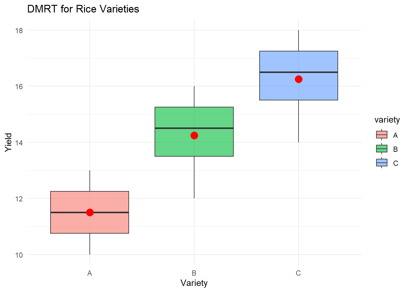 DMRT เป็นการเปรียบเทียบค่าเฉลี่ยแบบ pairwise comparision เพื่อหาว่าคู่ไหนต่างกันอย่างมีนัยสำคัญ โดยใช้ค่า Least Significant Range (LSR) ซึ่งคำนวณจากจำนวนกลุ่ม ระดับความเชื่อมั่น และค่า Mean Square Error (MSE) ที่ได้จาก ANOVA